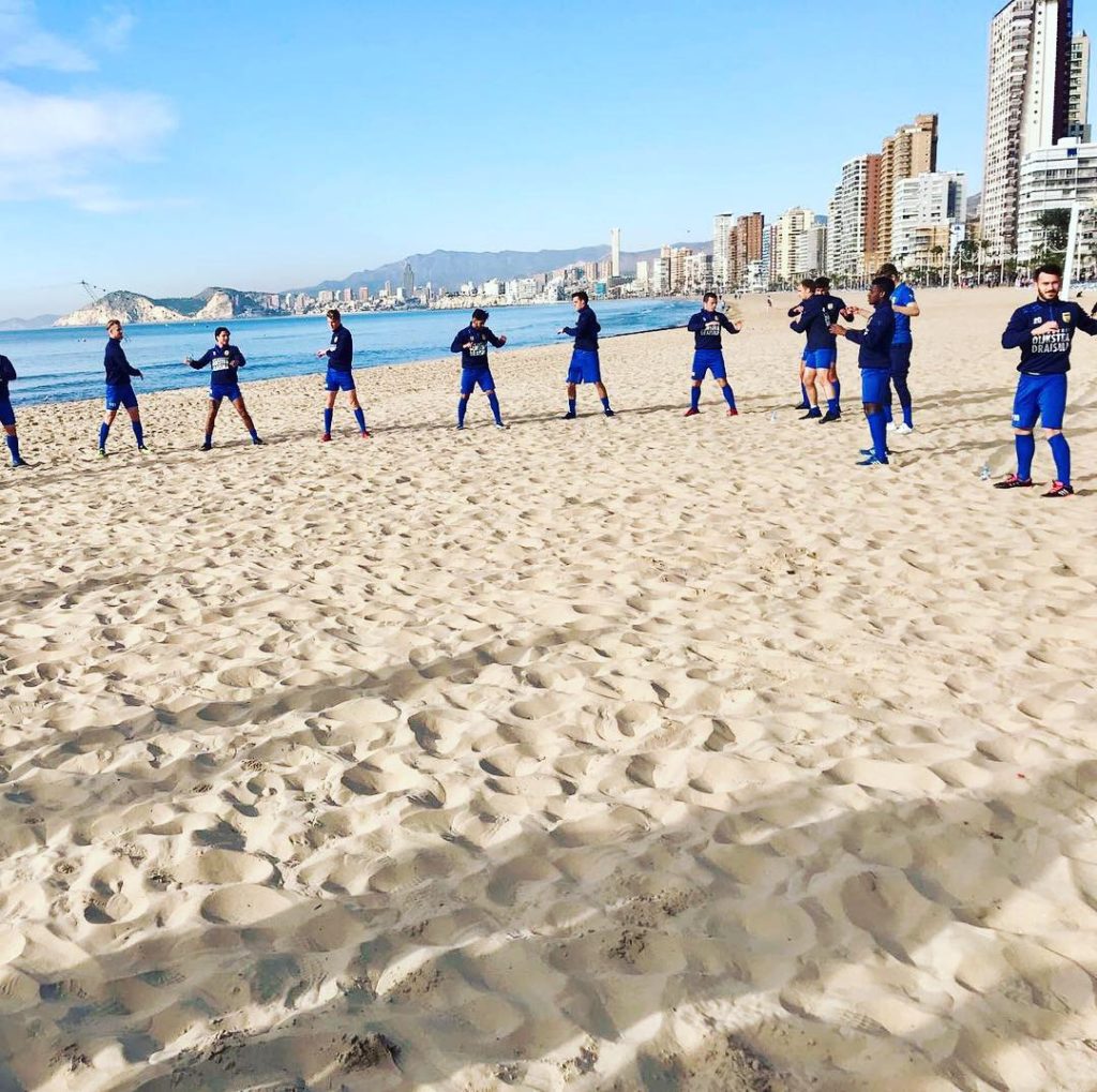 Dankzij een viertal trouwe sponsoren (Reisbureau Internoord, YS Holding, Airpress en Bourguignon) is de eerste selectie van SC Cambuur zich momenteel aan het voorbereiden op de tweede seizoenshelft in Spanje. Na een aantal pittige trainingen en een oefenwedstrijd tegen KV Mechelen is het vandaag alweer de laatste dag onder de Spaanse zon. De mannen van René Hake sluiten het trainingskamp af met een sessie op het strand van Benidorm en dat levert mooie plaatjes op!