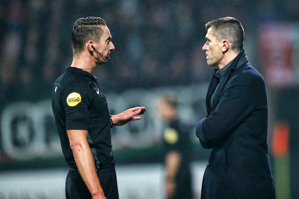 De oefenmeester werd afgelopen vrijdag weggestuurd door scheidsrechter Bax na protesten bij de eerste tegentreffer van N.E.C. wegens gevaarlijk spel.