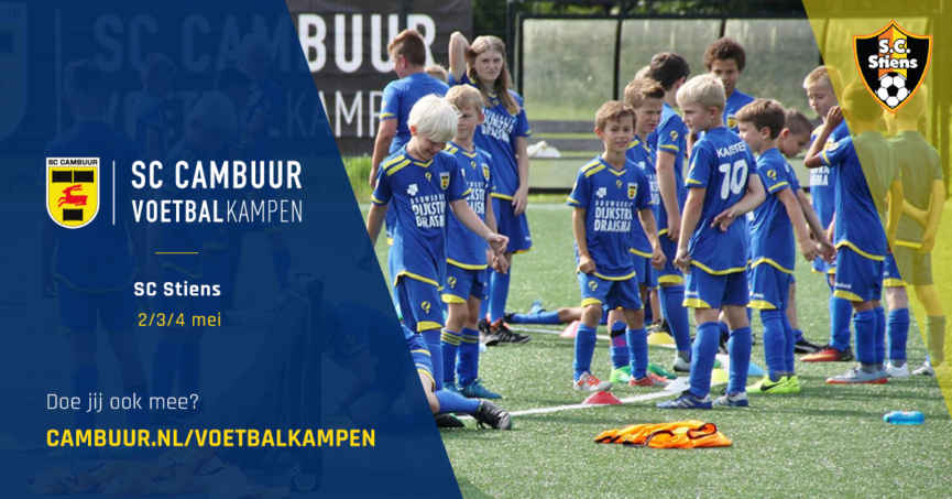 In de meivakantie van 2018 komt SC Cambuur weer naar SC Stiens met een SC Cambuur Voetbalkamp! Ben je tussen de 6 en 15 jaar oud en wil je graag trainen als een echte profvoetballer van SC Cambuur? Drie dagen lang voetballen en plezier maken in een uniek SC Cambuur Voetbalkampen-tenue? Schrijf je dan nu in via cambuur.nl/voetbalkampen!